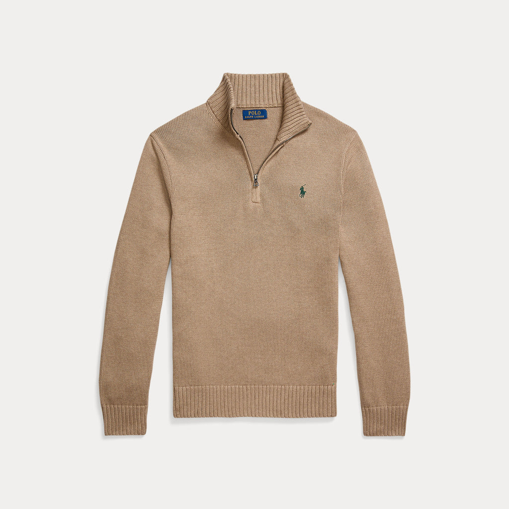 This classic mockneck sweater is knit from soft combed cotton and finished with the iconic Polo Pony.Ralph LaurenHalf Zip Ruime pasvorm100% KatoenBronze Melange - Beige