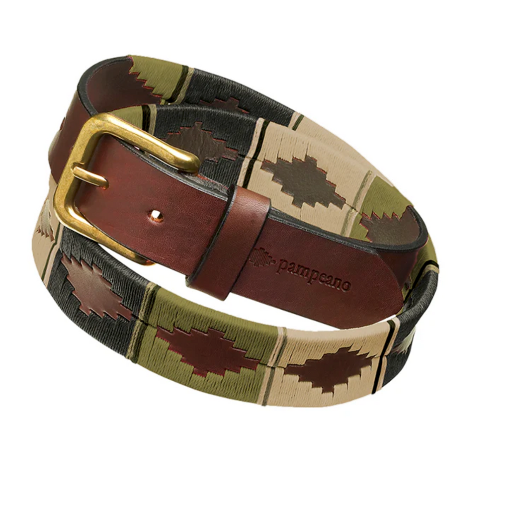 Bosque means ‘forest’ in Spanish. Crafted on rich brown leather, its handwoven pampa design combines deep green, lighter green, and cream stitching - a palette inspired by dappled light, layered foliage, and the quiet depth of woodland landscapes. To those who wear it, this premium belt is a subtle nod to time spent outdoors, blending natural character with refined, everyday elegance.